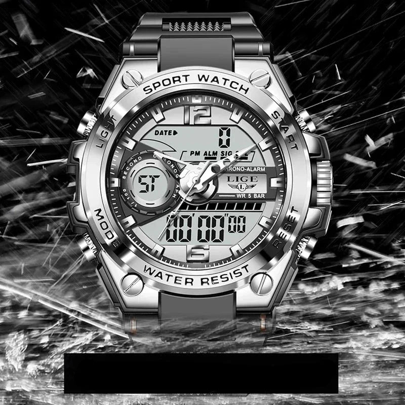 Funções Completas: Mostrador de horas, data e cronômetro, reunindo tudo o que você precisa em um relógio.